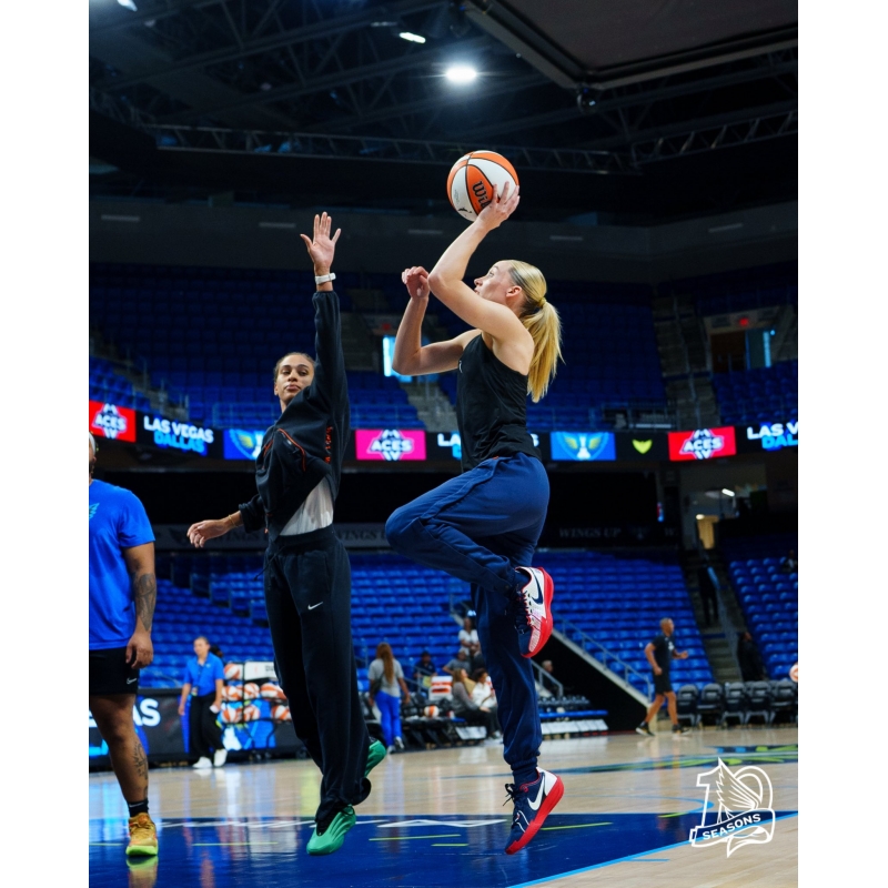Luisa Geiselsoder wore the Nike Book 1 Moss Point sneakers again on 2025-07-03, Wings vs Mercury.