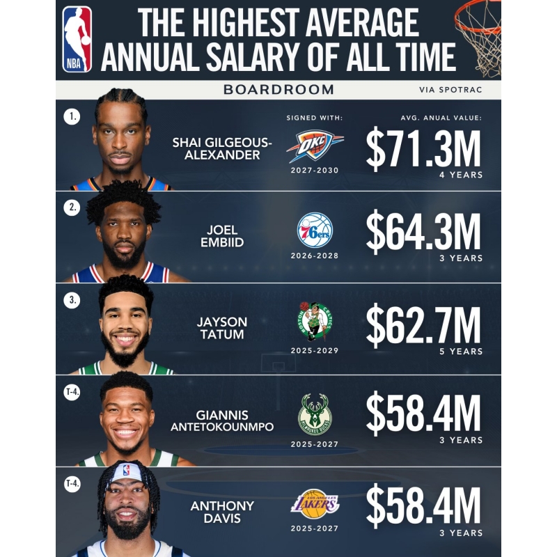The Oklahoma City Thunder star has agreed to a 4-year, $285 million super max extension—the highest average annual salary ever. Fresh off a Finals MVP, regular-season MVP, and OKC’s first NBA title, the 26-year-old Canadian is now one of the league’s biggest global stars.