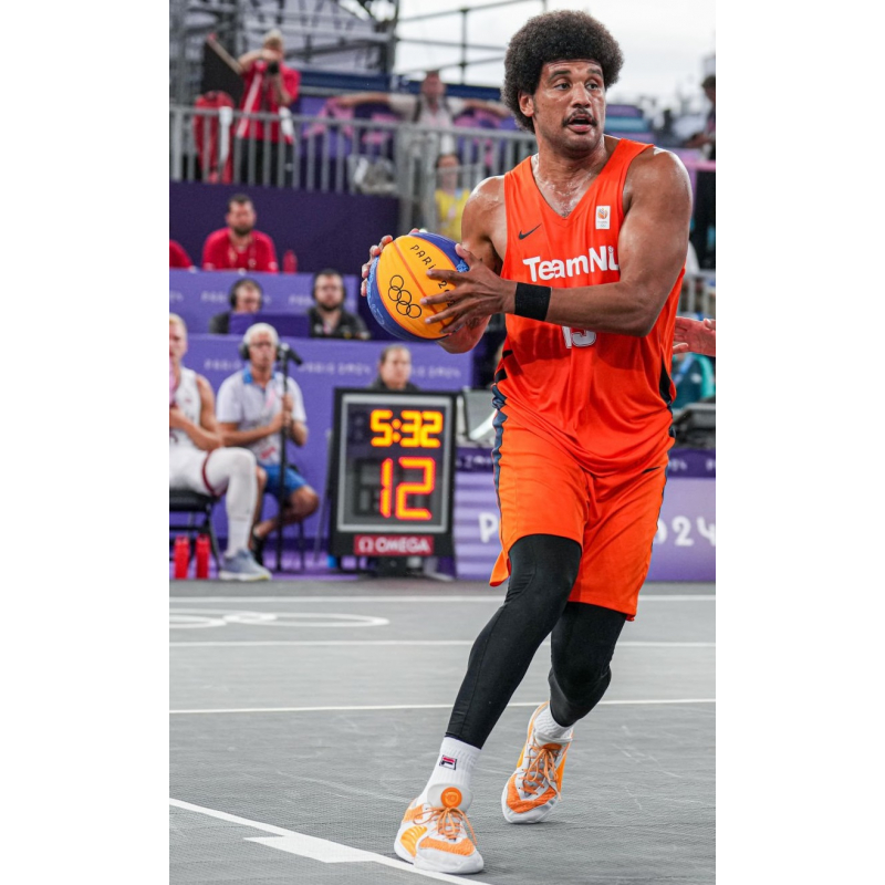 Dimeo van der Horst last game on 2024-08-05 against France 3x3 Men's Basketball Team played in Nike KD 16.
