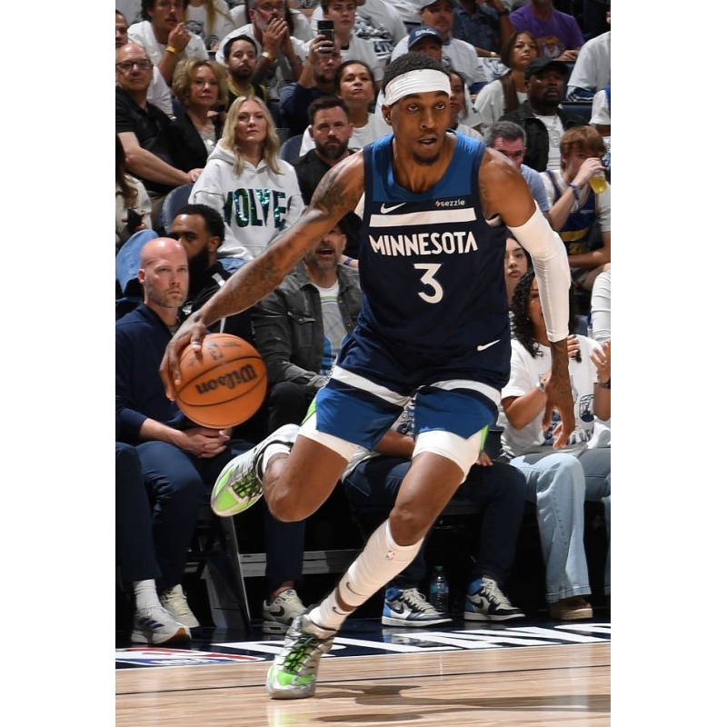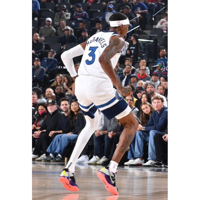 Jaden McDaniels last game on 2026-04-10 against Houston Rockets played in Nike Kobe 4 Protro x F.C. Barcelona.