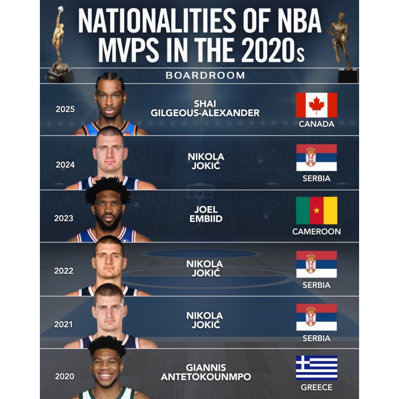 Nikola Jokić (born February 19, 1995) is a Serbian professional basketball player who is a center for the Denver Nuggets of the National Basketball Association (NBA). Nicknamed "the Joker", he is widely regarded as one of the greatest players and centers of all time, and is often considered the greatest draft steal in NBA history. A six-time NBA All-Star, Jokić has been named to the All-NBA Team on six occasions (including four first-team selections), and won the NBA Most Valuable Player Award for the 2020–21, 2021–22, and 2023–24 seasons. He represents the Serbian national team, with which he won a silver medal at the 2016 Summer Olympics, and a bronze medal at the 2024 Summer Olympics.