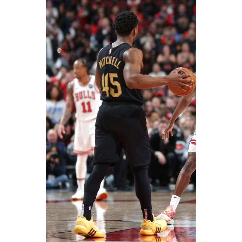 DONOVAN MITCHELL SIGNATURE BASKETBALL SHOES MADE IN PART WITH RECYCLED MATERIALS.