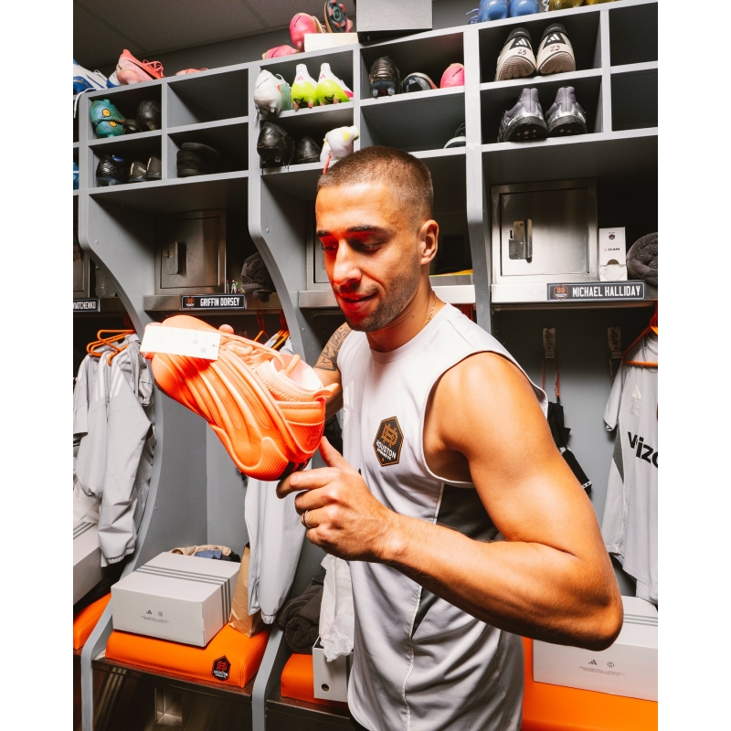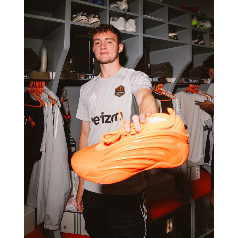 @jharden13 and adidas made sure every Houston Dynamo player had a fresh pair of his new adidas Harden Vol. 9 in the “Dynamo Orange” colorway ☄️