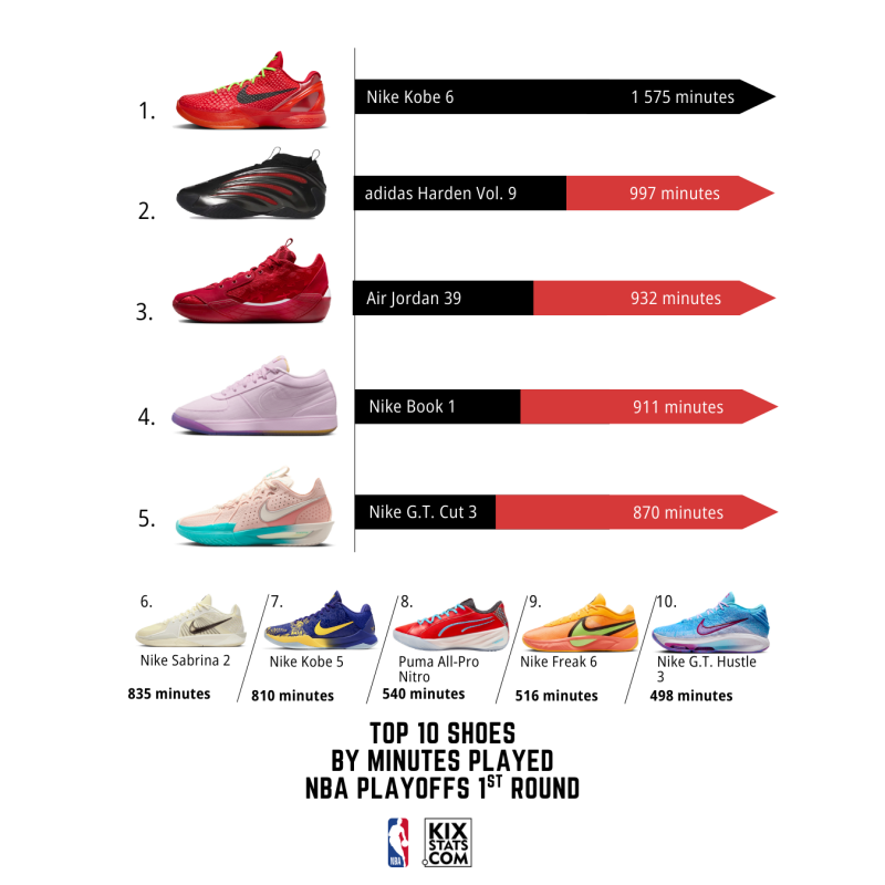 Take a look at TOP 10 kicks by minutes played during NBA Playoffs First Round! 👀🔥