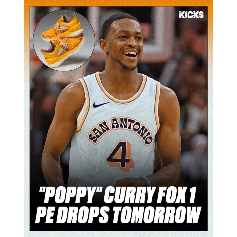 De’Aaron Fox’s “Poppy” Curry Fox 1 PE, dedicated to his daughter. , is dropping in a very limited size run tomorrow on UA.com 💐