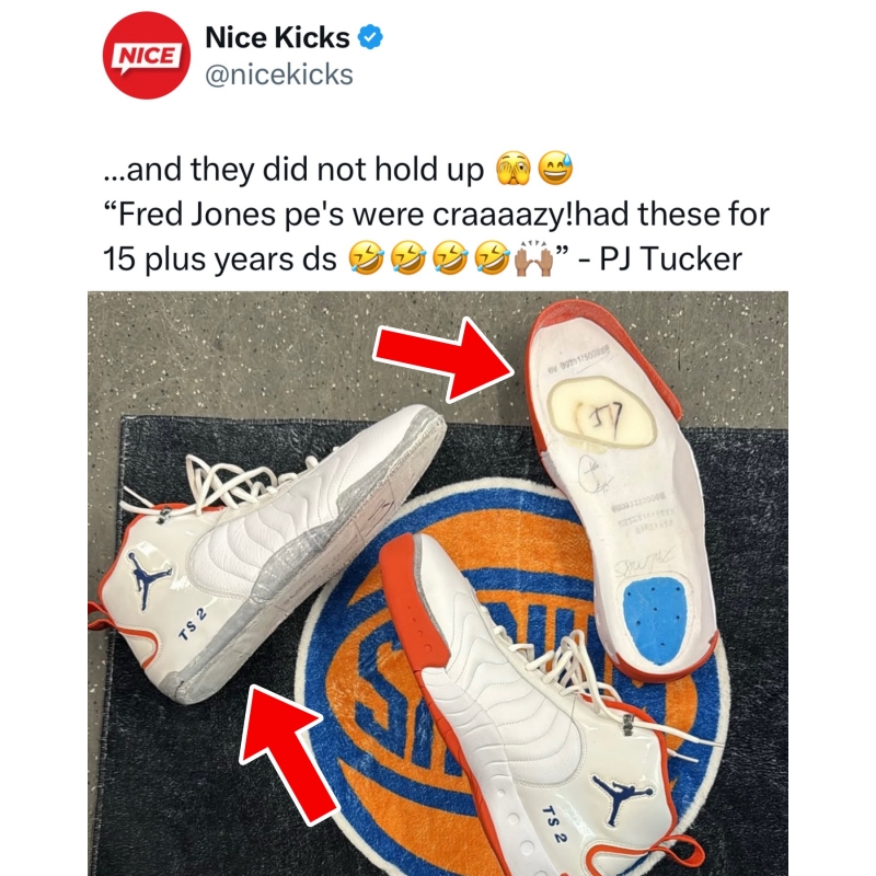 PJ Tucker brought out Fred Jones’ 2007-08 Knicks Jordan Jumpman Pro PE for warm-ups and they did not survive 😭