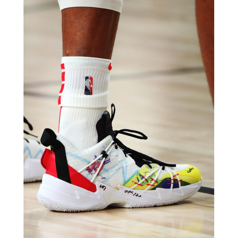 Russ wanted a shoe that felt light, locked him in, and looked crazy fast. The Jordan "Why Not?" Zer0.3 SE is lighter and lower than the Zer0.3, with a plush collar to provide comfortable support around the ankle. It's loaded with responsive forefoot cushioning to help Russ transform his fearlessness into force.