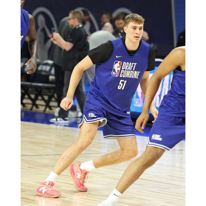 Cooper Flagg is back to rocking New Balance, and was seen in the NBA Draft Combine in some New Balance Hesi V2 Low 👟