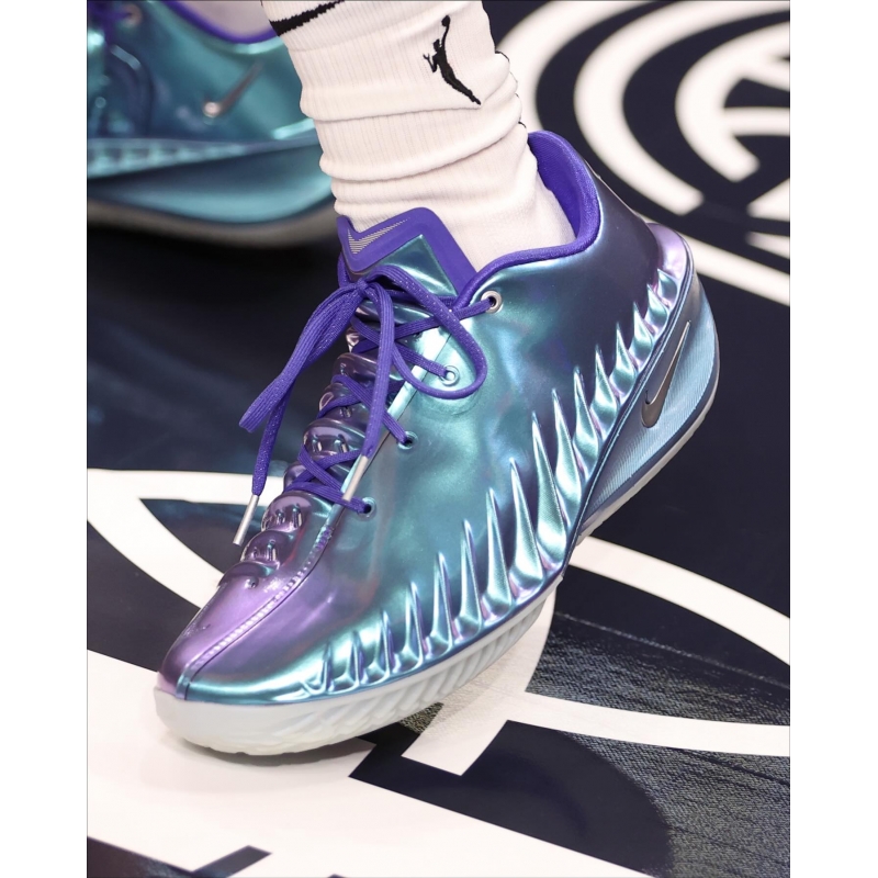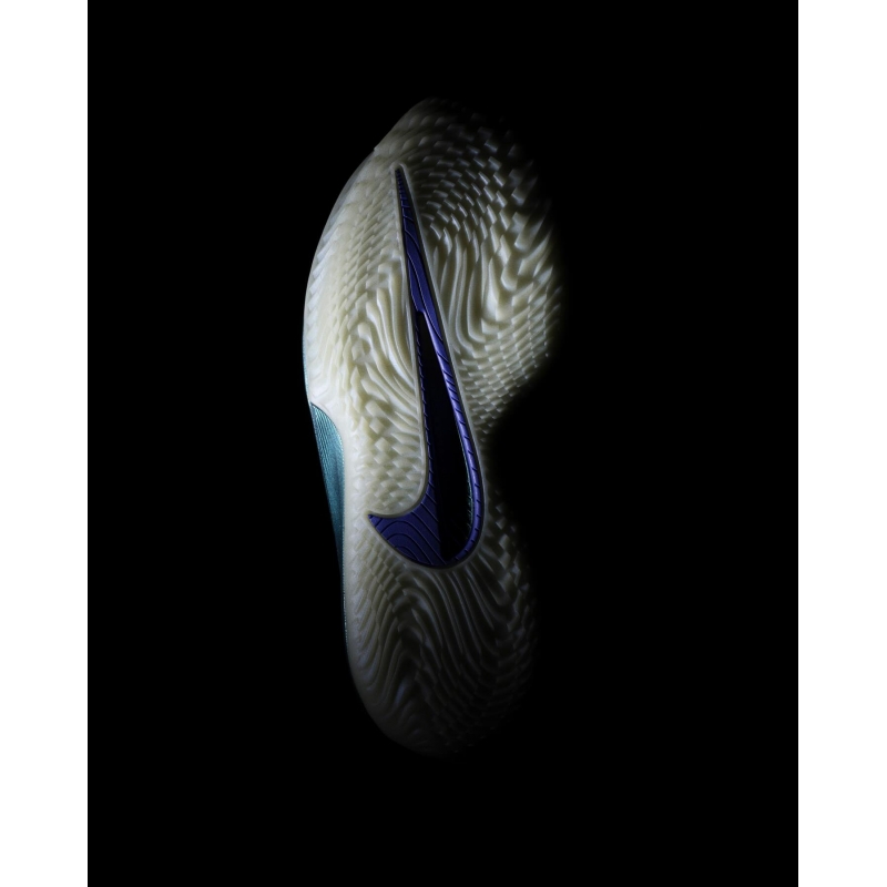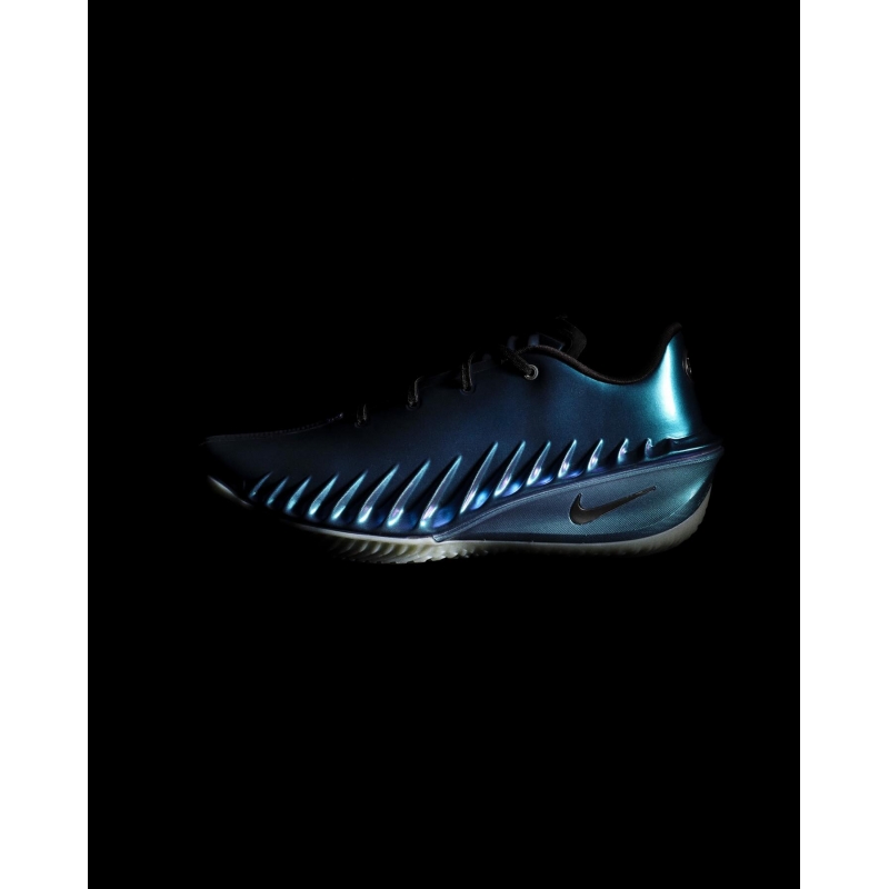 The sleek exoskeleton upper sports a futuristic, yet attested aesthetic that's both rooted in Nike Basketball lore and asking to push the limits of the game. The pinky toe side of the upper sports synthetic material while the big toe side is made of a lightweight textile.
