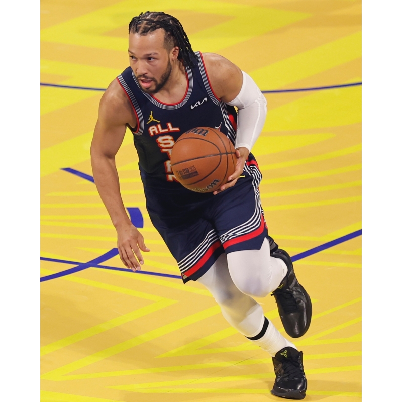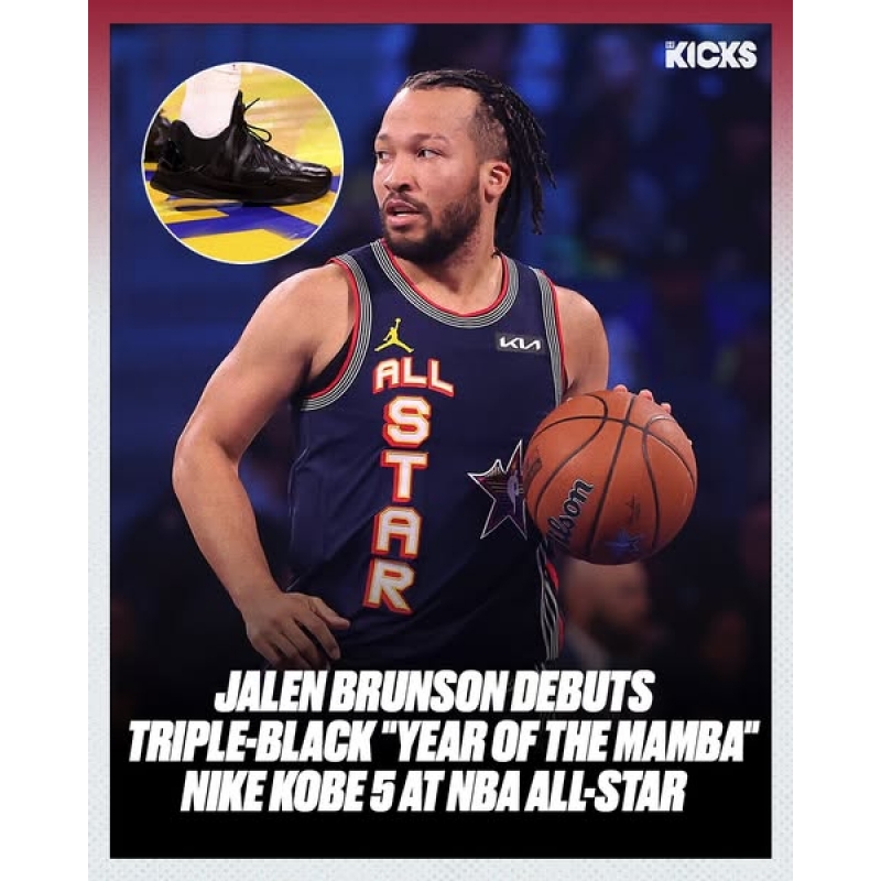 Jalen Brunson laced up a new triple-black Nike Kobe 5 Protro for tonight's NBA All-Star Game 🐍