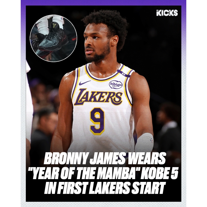 Bronny James made his first career start with the Lakers (on Mamba Day) in Triple-Black "Year Of The Mamba" Nike Kobe 5s 🙌
