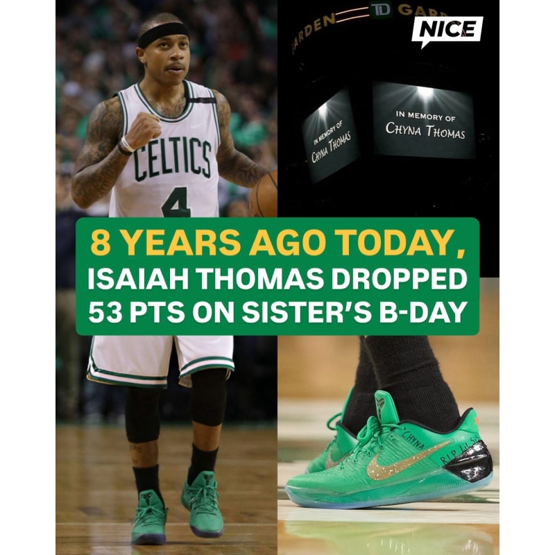 On this day in 2017, Isaiah Thomas dropped 53 points in a playoff game against the Wizards on his late sister Chyna’s birthday 🙏 💚