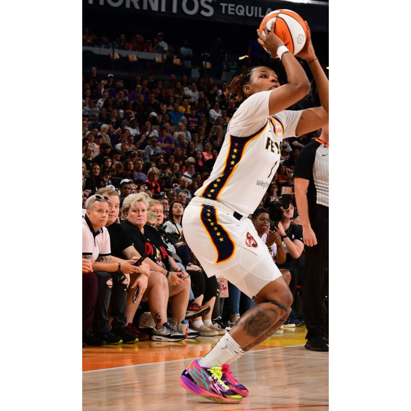 GRIP: Full-coverage engineered nonslip rubber compound with feather (a nod to Melo’s signature wings) tread pattern for enhanced durability and traction. Ideal for quick cuts and spot up jumpers.